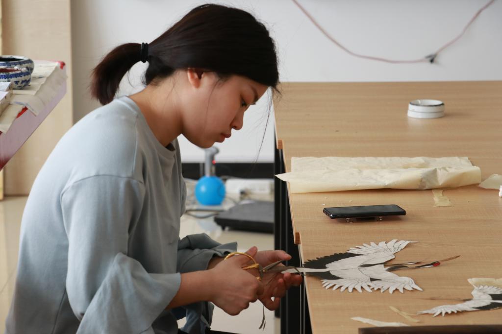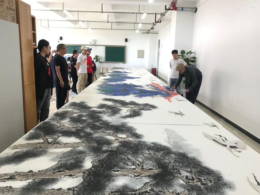 近日,由工艺美术系师生共同创作的巨幅画作《鹤鸣九霄》悬挂在了顺义校区职工之家大厅。
