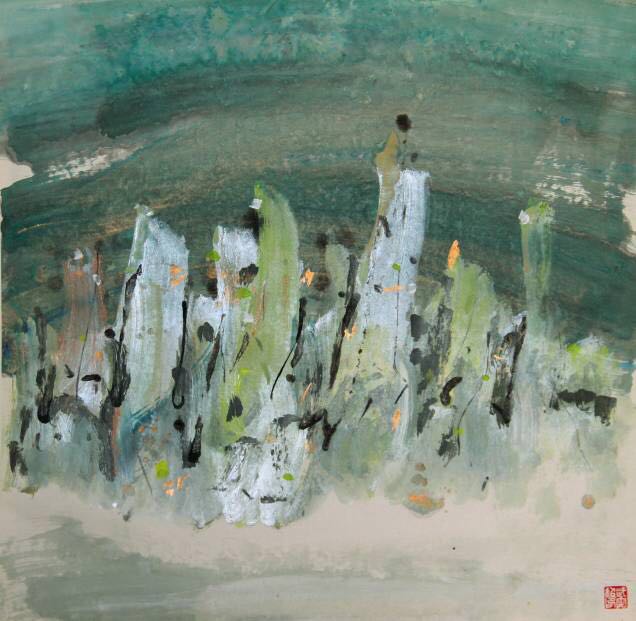 ▲武云超 《蓬莱有仙山》纸本彩墨 69x69cm