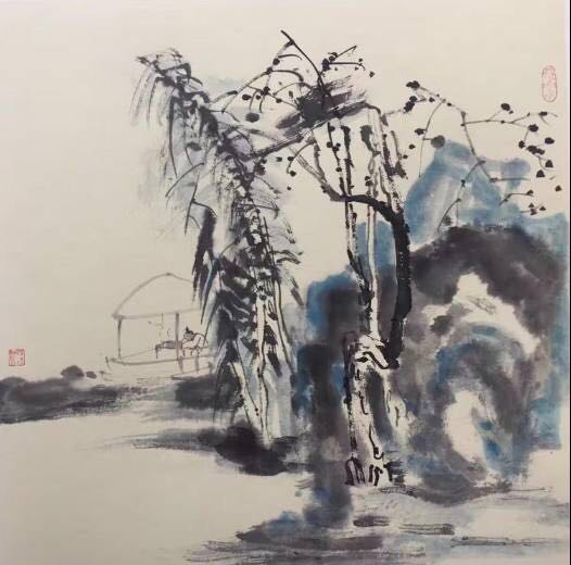 ▲ 米海鹏 《柴门》 纸本水墨 50x50cm