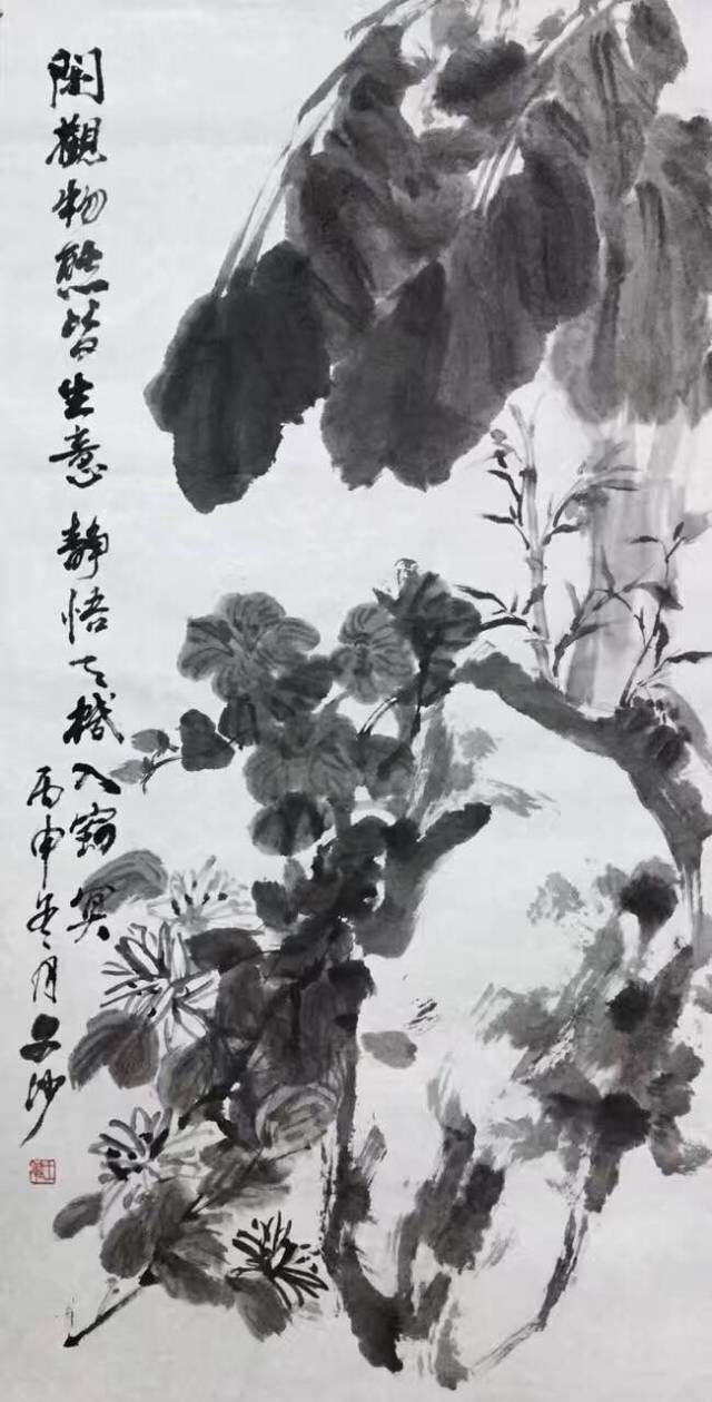 ▲ 王斌 《芭蕉芙蓉》 纸本水墨 136x68cm