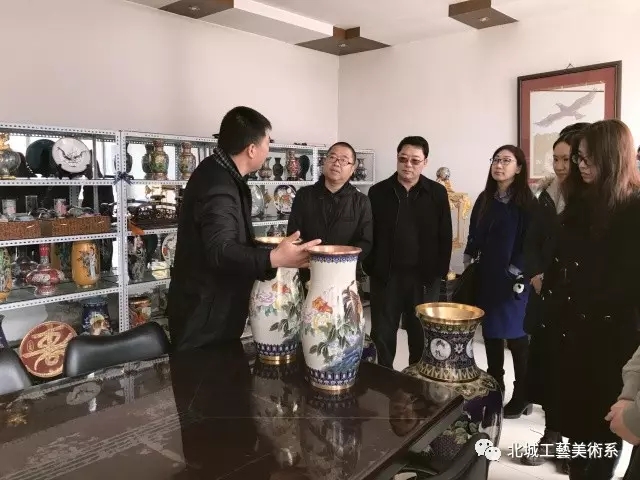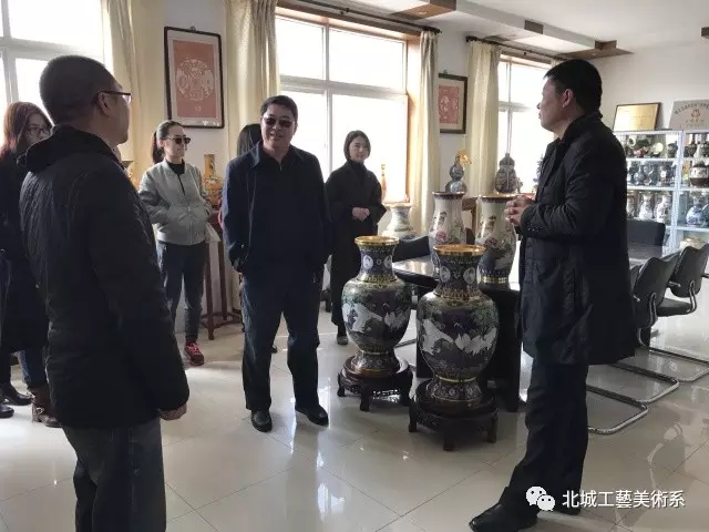 3月29日上午,ac米兰官网中文网站工艺美术系教师在校党委副书记、副校长秦士友、工艺美术系主任陈秋荣、副主任李宁的带领下,走访了位于顺义区的北京良山景泰蓝工艺有限公司,实地考察景泰蓝制作工艺,洽谈合作事宜。