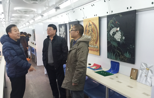 11月30日下午,校领导刘林、秦士友、胡丽琴、曾玉红前往顺义校区2号实训楼北侧“青春号艺术馆”,视察了工艺美术系校外实践成果展。文化学院副院长、工艺美术系主任陈秋荣,校办副主任郭红霞及相关老师陪同。