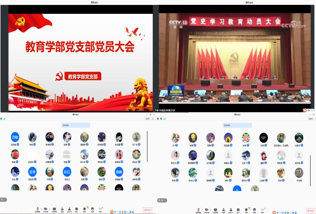 2月24日,教育学部党支部以视频会形式召开了“学党史悟思想办实事开新局,以优异成绩迎接建党一百周年”党史学习教育启动会,传达了中央及学校党委关于开展党史学习教育的部署和要求,对本支部党史学习教育工作方案进行了解读;并集中观看了中央学习动员会新闻视频和《中国共产党为什么能建立新中国》微党课视频。