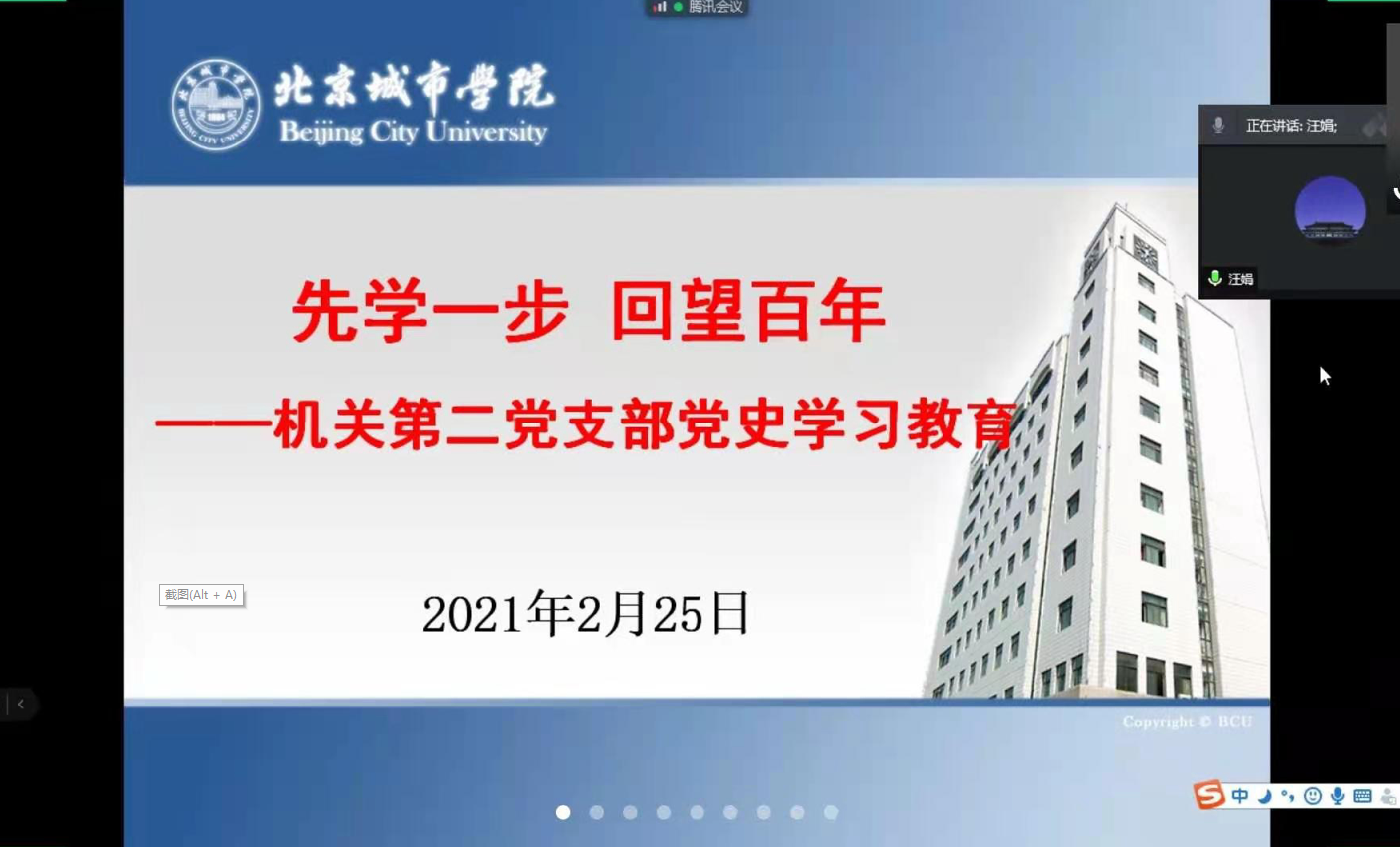 2月25日,航天城校区学管第一党支部组织开展了以“学党史知党情 强党性”为主题的线上主题党日活动。全体党员集体观看了习近平总书记在动员大会上的重要讲话精神,党员代表分享了自己的学习体会。