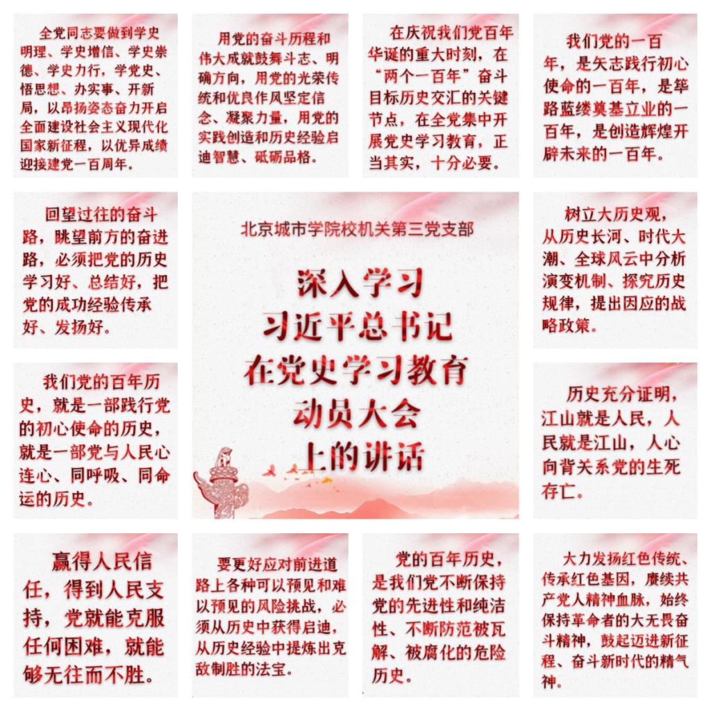 3月1日,机关第三党支部启动党史学习教育工作。学习教育工作安排以“学党史·明初心·践使命”为主题,内容包括“学习总书记在党史学习教育动员大会上的重要讲话精神”“百年党史天天学”“中共党史专题讲座”和“党史主题知识问答”四部分。