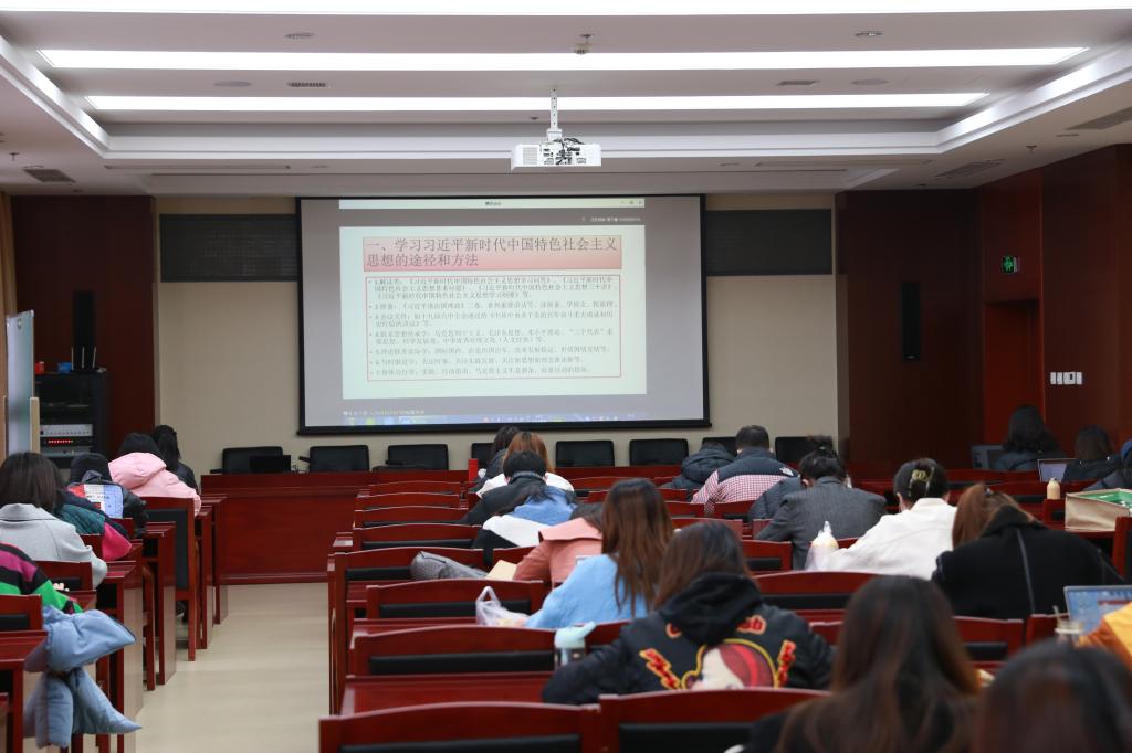 赵志强老师分别讲述了习近平新时代中国特色社会主义思想的学习途径和方法、产生的历史条件,以及思想的主题和核心内容,并对2021年11月16日发布的习近平关于《中共中央关于党的百年奋斗重大成就和历史经验的决议》的说明进行了解读。他强调,党的十九届六中全会是在重大历史关头召开的一次具有重大历史意义的会议,我们要深刻领悟会议精神,不忘初心,牢记使命。