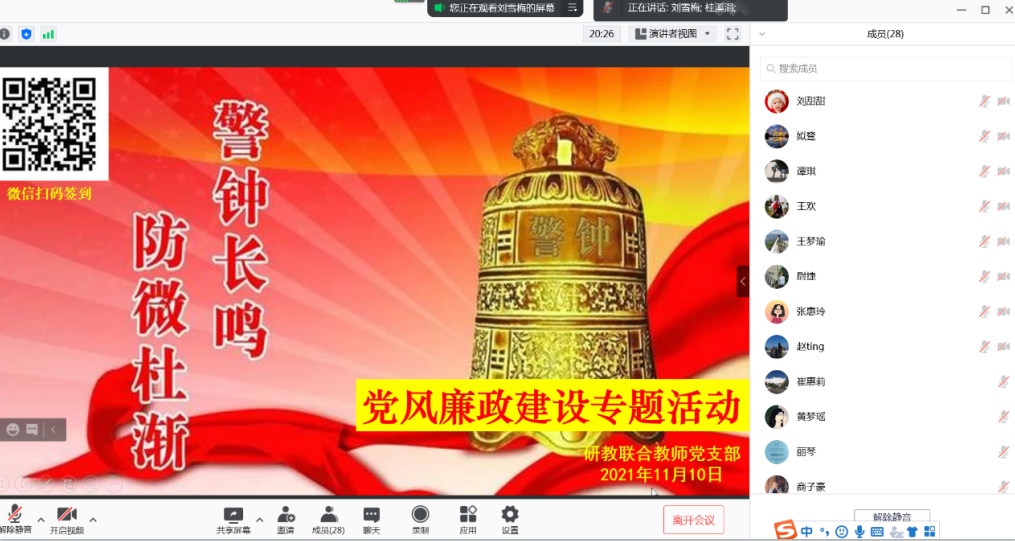 为深入学习贯彻落实十九届中纪委五次全会和北京市第十二届纪律检查委员会第六次全体会议精神,进一步加强党风廉政建设,根据《ac米兰官网中文网站2021年党风廉政建设宣传教育月活动方案》,研教联合党总支教师党支部以“践行初心担使命,廉洁自律有作为”为主题,于10月中旬至11月中旬在支部全体党员中开展“党风廉政建设宣传教育月”活动,以提高自身廉洁自律意识,筑牢拒腐防变的思想防线。