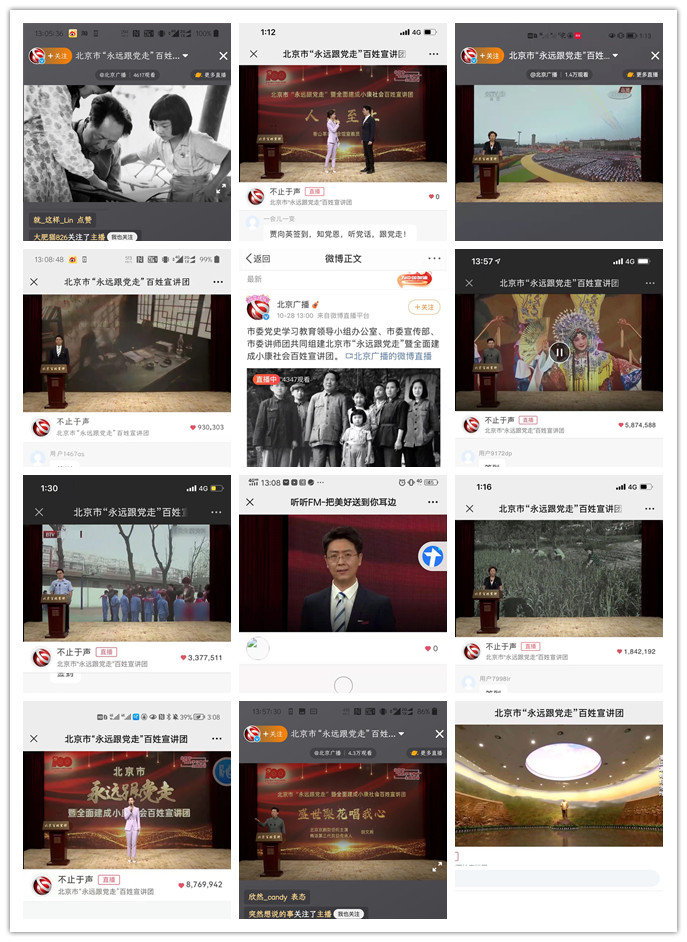 市委党史学习教育领导小组、市委宣传部、市委讲师团组建的北京市“永远跟党走”暨全面建成小康社会百姓宣讲团于10月28日13:00开展线上直播活动。表演学部党支部组织党员教师通过线上视频平台观看。