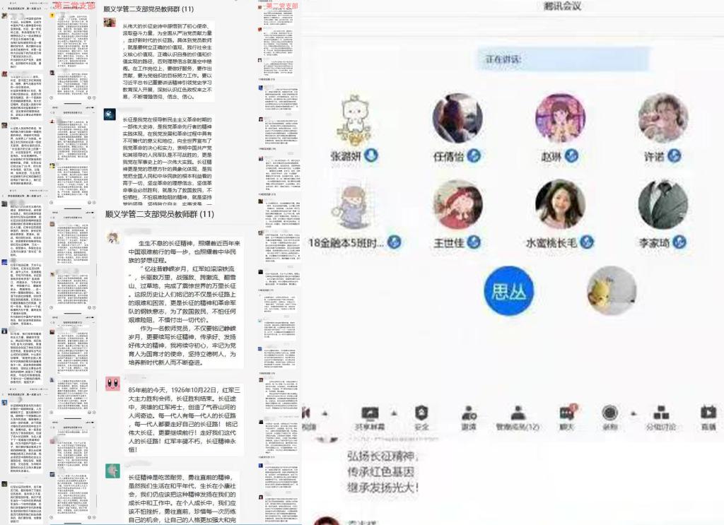 各支部党员回顾红军长征的相关历史内容,感悟长征精神,通过腾讯会议、微信群等平台互相交流。大家积极踊跃发表对于长征精神的理解以及在未来要如何将长征精神发扬传承。
