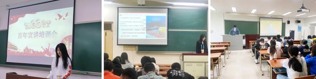 9月23日,参加宣讲的同学们接受了培训。进班宣讲活动于10月份正式开展。48位宣讲团成员从舞台呈现、党史延伸、经历感受三个方面向大家呈现了文艺汇演中自己感触最深的两个节目,将自己的所看所想分享给更多的同学们。同学们认真观看,认真感受,了解了党史资料背后的故事,深刻领会到中国共产党领导中国人民共同奋斗这一百年给中国带来的巨大变化,也体会到了中国共产党从始至终勇于探索、敢为人先、不怕牺牲的精神。
