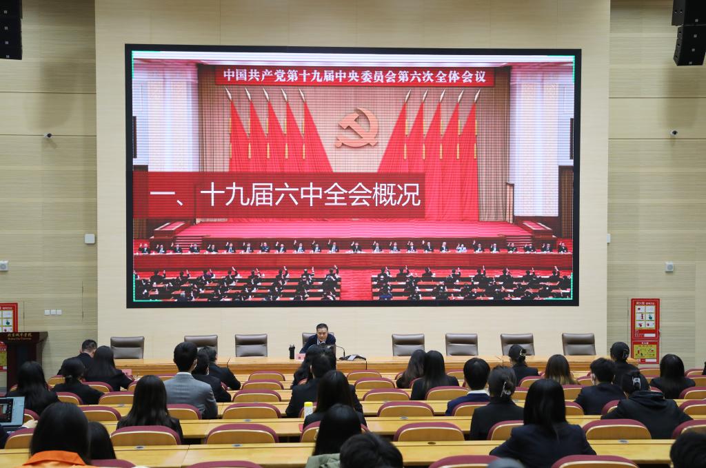 龚裕书记在会上指出,要将学习宣传贯彻党的十九届六中全会精神作为开展党史学习教育的重中之重,在全校迅速掀起学习宣传贯彻热潮,青年学子要紧跟时代脚步,深入领会精神实质,内化于心,外化于行,努力为实现中华民族伟大复兴献出青年力量。