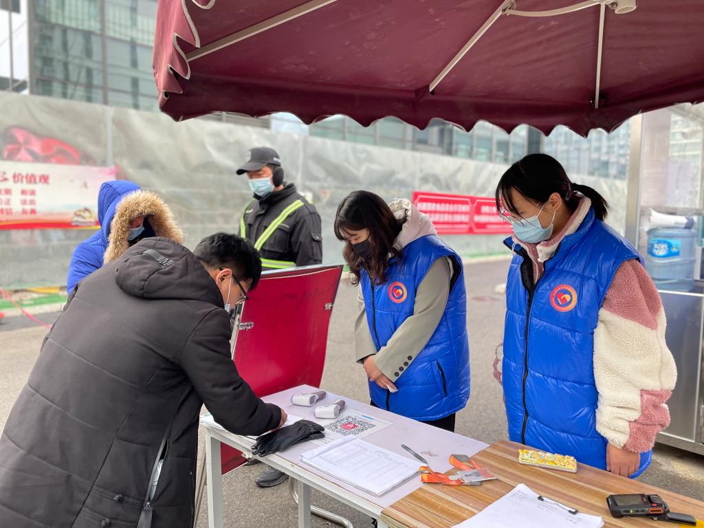 12月,研教联合党总支研究生第二党支部的党员们利用课余时间穿上“蓝马甲”,化身防疫志愿者,在党支部书记班子晨的带领下,走进海淀区西北旺镇天阅西山社区,严查“两码”,严测体温,引导市民提高个人防护意识,保持良好防疫卫生习惯。