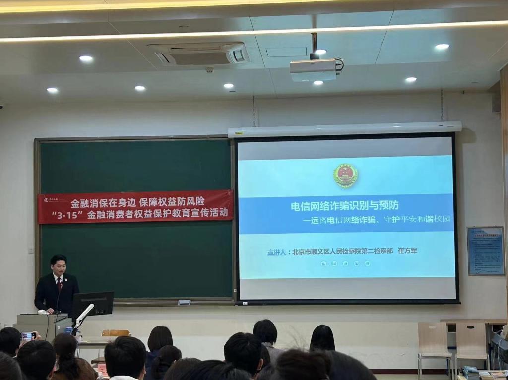 3月12日,经管学部联合中国银行顺义支行、北京市顺义区人民检察院在ac米兰顺义校区举办了“金融素养提升”第一课暨金融安全知识讲座,中国银行顺义支行副行长王庆桂、天竺支行行长何晓月、顺义区人民检察院检察官崔方军和任巍巍等一行9人到校参加,经管学部副主任王海霞出席,金融教研室教师杨欢欢主持活动。50余名同学参加了本次讲座。
