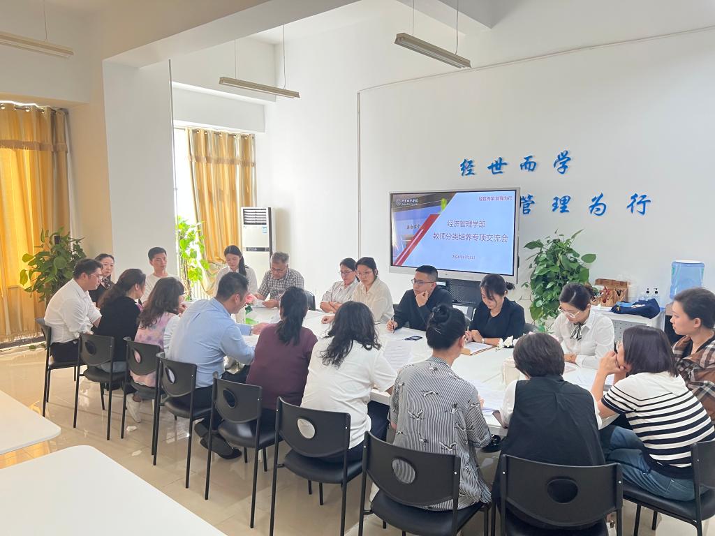 9月26日,经济管理学部教师分类培养专项交流会在2S230会议室召开。学部核心组、教研室主任、教师代表出席,会议由学部书记徐丽主持。