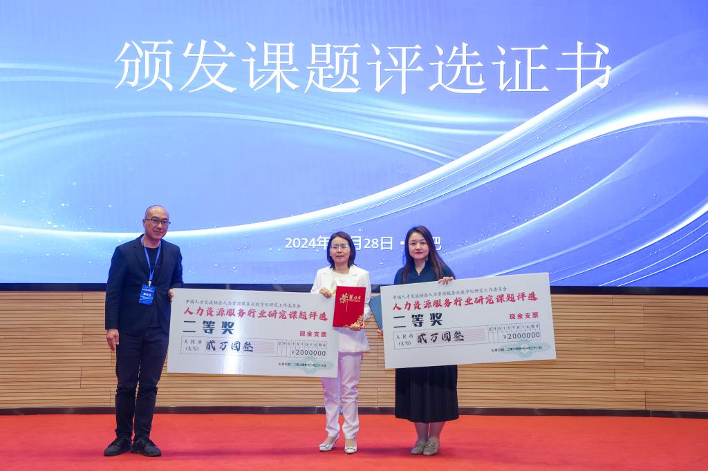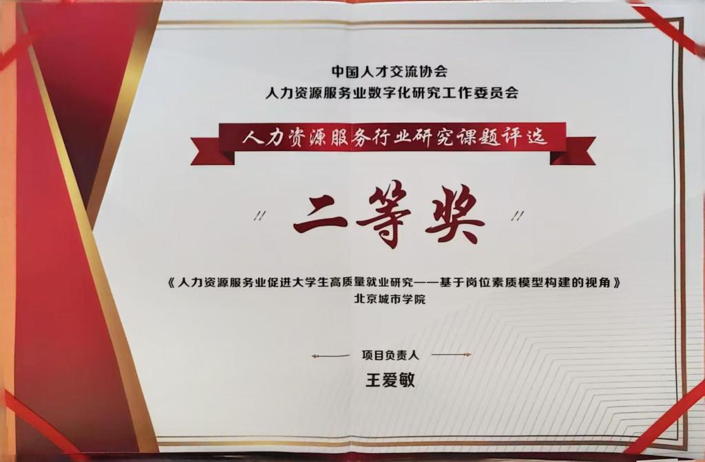 会上,中国人才交流协会人力资源服务业数字化研究工作委员会总结了关于人力资源服务业数字化研究课题的申报立项情况,去年向公开征集了100多项课题,第一次专家网申入围40余项。课题研究成果分别从研究意义与影响力、研究方法与数据分析、结论与实践应用、课题撰写质量、创新性与影响力(课题的创新思考和对行业发展的引领作用、对人力资源服务业管理实践和政策制定的影响潜力)等方面进行专家评估,最终,6项课题研究成果脱颖而出,分别获得一等奖1项,二等奖2项,三等奖3项。ac米兰经管管理学部人资教研室王爱敏老师的研究成果《《人力资源服务业促进大学生高质量就业研究--基于岗位素质模型构建的视角》》获得二等奖,同时被中国人才交流协会聘为人力资源服务专家库成员。