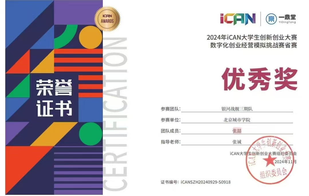 12月16日,经管学部学生在2024年iCAN大学生创新创业大赛数字化创业经营模拟挑战赛全国总决赛获奖。经管学部代表队经过激烈的角逐,将多项大奖尽收囊中,载誉而归。杨继民、李瑞、袁悦团队获得省赛一等奖、全国三等奖的佳绩,熊荃、戴黄燕、秦梓馨团队获得了省赛三等奖,王紫璇、马蛟洋、武莘伊和张喆两支队伍获得优秀奖,指导教师张诚为同学们提供详细的赛事指导。企业模拟经营创行协会负责本届竞赛的所有校内组织环节。