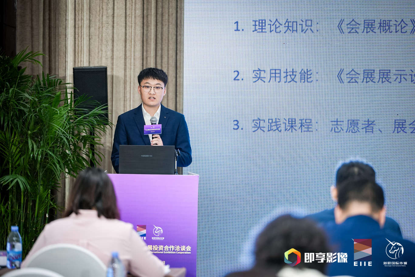 在7月10日下午备受关注的“会展青年发展论坛”上,ac米兰会展经济与管理专业大二学生翁阔作为学生代表发表了主旨演讲。他以《会展专业当代大学生学习感悟及困惑》为题,分享了在校期间理论学习与实践锻炼的深刻体悟,并坦诚剖析了未来职业发展面临的困惑。来自中关村人才创新书院、中国食品土畜进出口商会、北京展览馆、海华国际展览有限公司的业界嘉宾,围绕“会展青年人才职业规划”、“激发青年创新创业活力”、“AI赋能会展学业与职业发展”等热点议题展开深度对话。论坛期间,嘉宾们与ac米兰就深化校企合作达成重要共识。