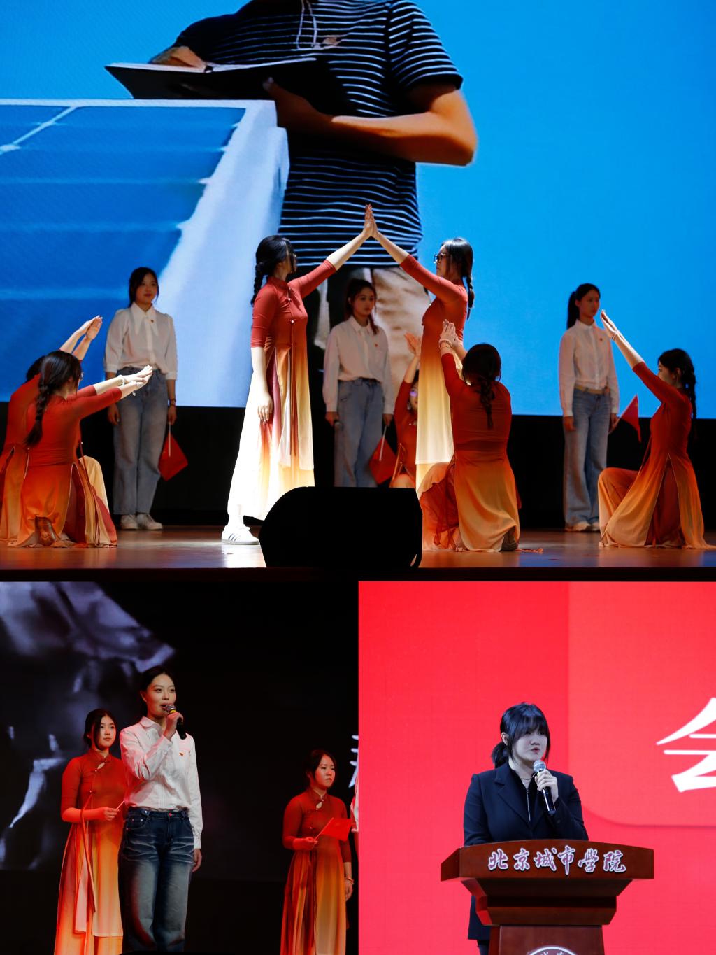 每个篇章均以扎实的理论宣讲开篇,辅以情景剧、舞蹈、T台秀、诗朗诵等多元文艺表现形式的创意表演。创意开场秀《门前情思大碗茶》以展位舞台设计融合现代编曲,为整场论坛奠定了传统与创新交织的基调;舞蹈《有我》用昂扬的舞姿勾勒出青年追随信仰的摸样,让红色信仰在青春的律动中代代相传;情景剧《大漠来的“轴”人》中,张骞穿越时空与现代工作者上演跨越古今的对话,诠释了中华文化的千年厚重;情景剧《万米高空的北京指南》和航司制服T台秀展现出了北京的文化魅力跨越了语言隔阂,让世界看见首都的开放风采;情景剧《智能生活,智在必得》展现了科技创新不仅有速度与力量,更饱含温度。经管学工办全体辅导员的朗诵《逐梦向未来》和歌舞《一起向未来》点燃全场,展现了北城师生将以更加昂扬的姿态投身首都发展建设。