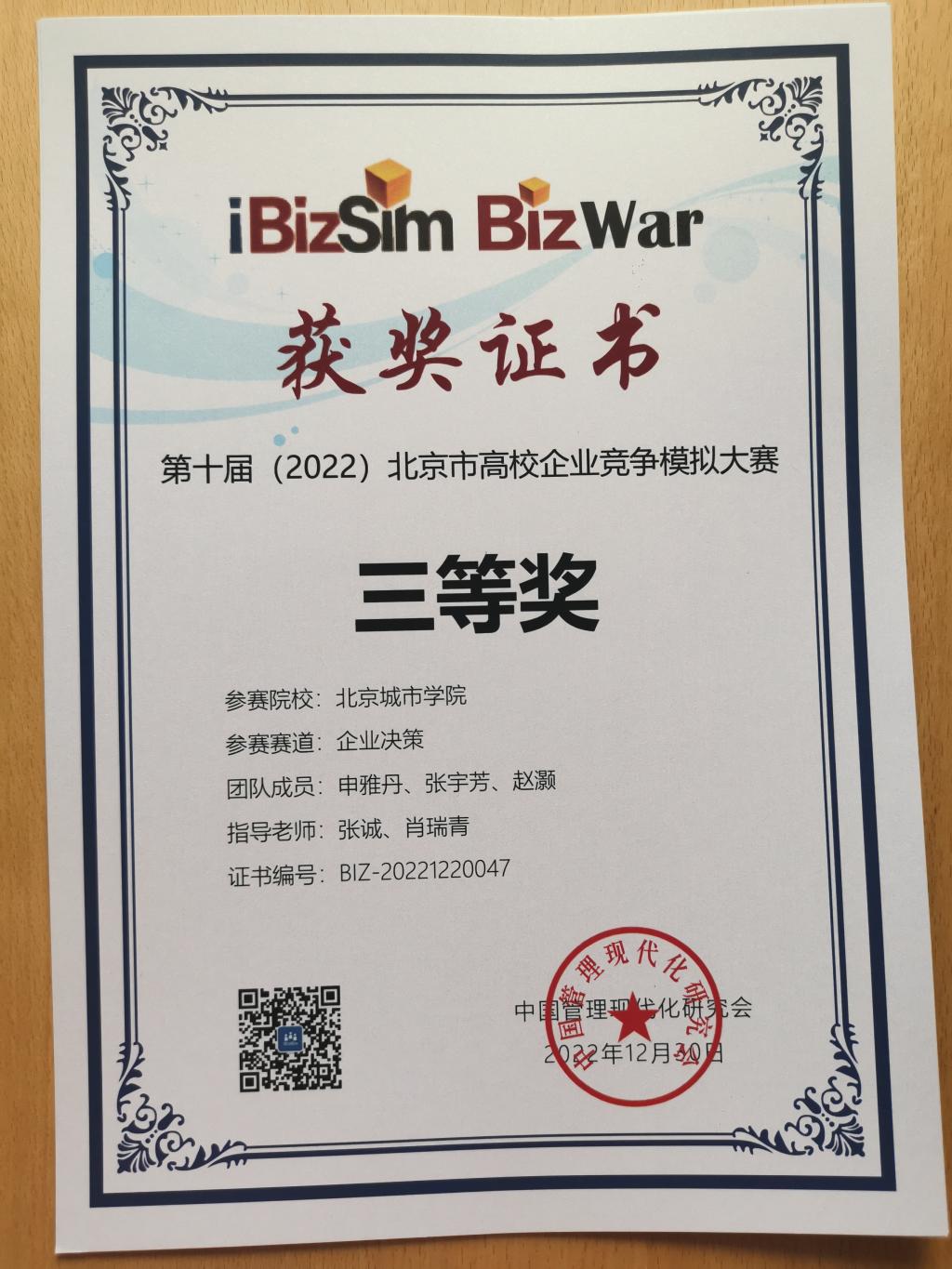 学生在iCAN大赛数字化创业经营模拟赛全国总决赛中获得三等奖
