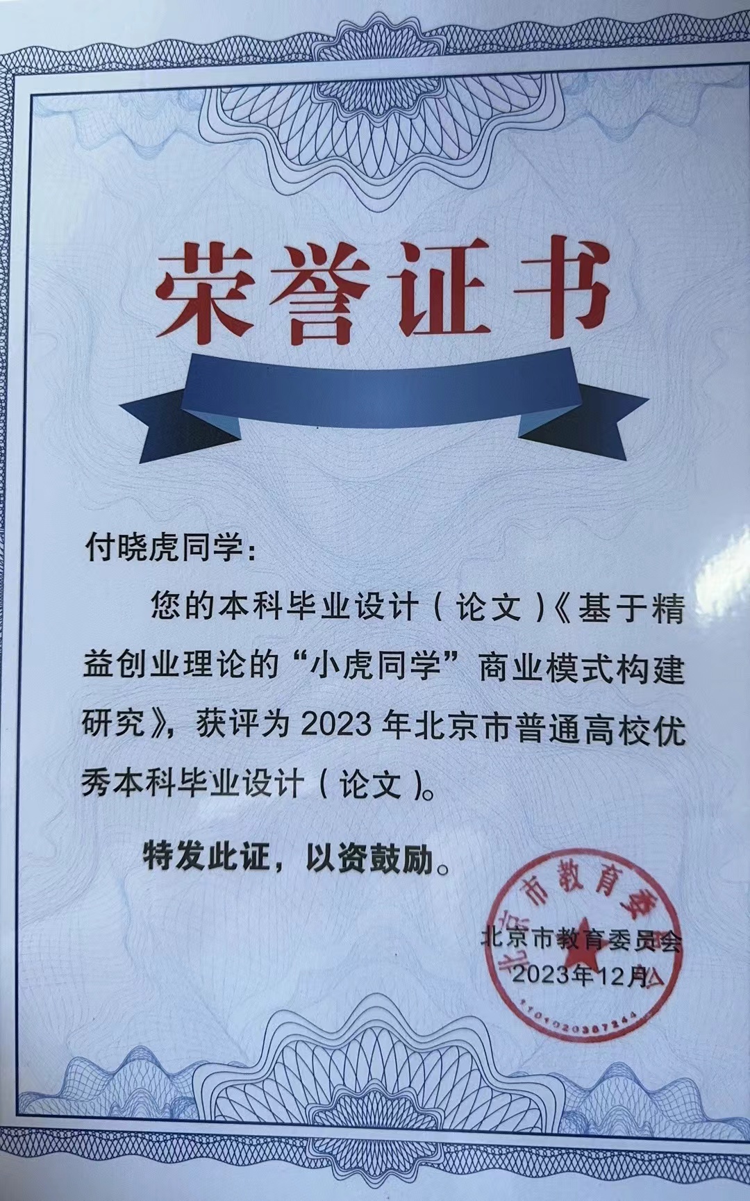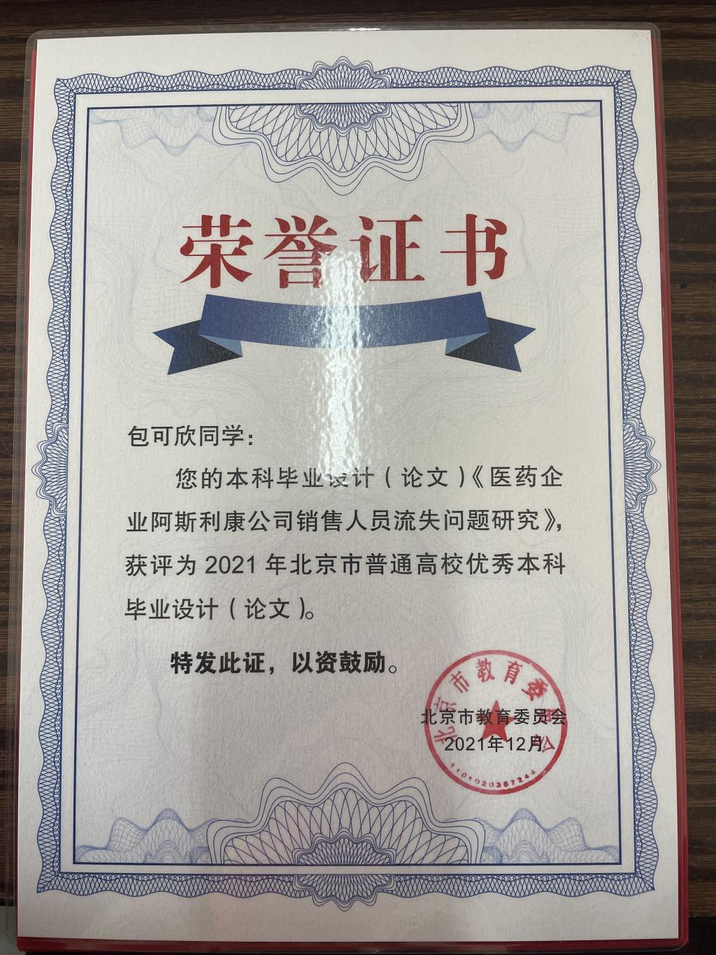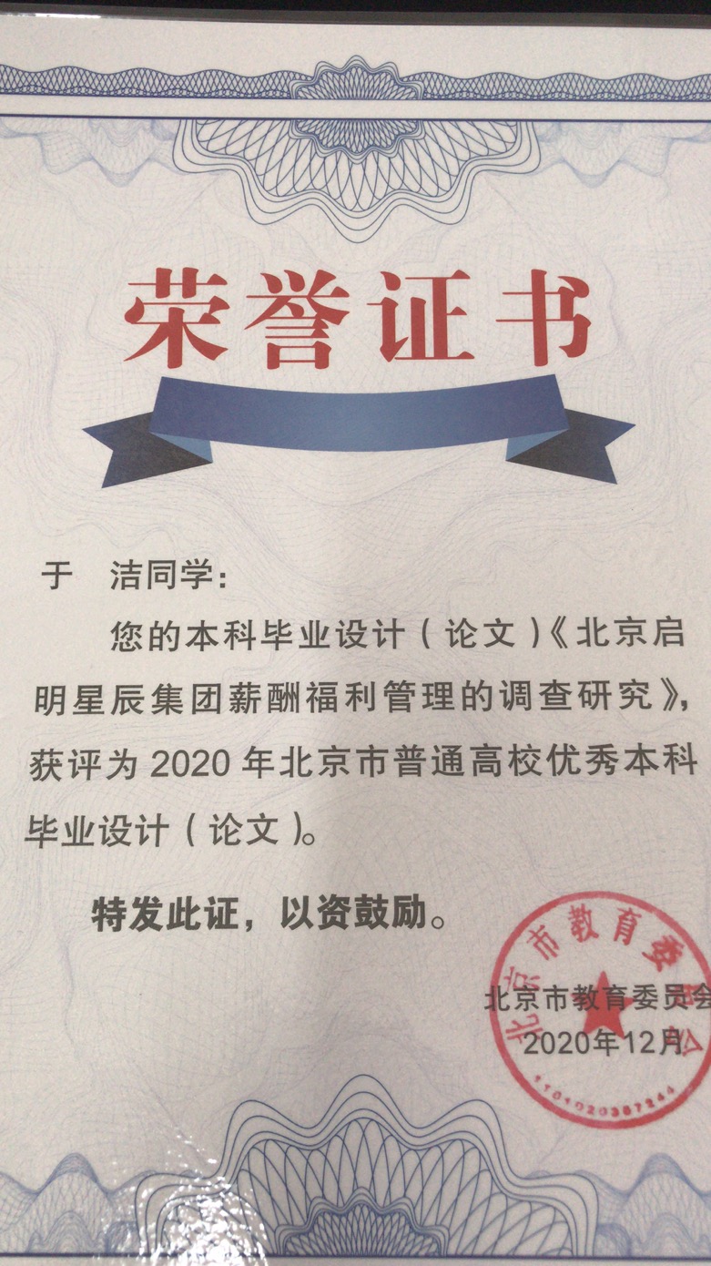 为锻炼学生学以致用的实践能力,工商管理专业鼓励学生进行企业问题的调研分析,并进行毕业论文的撰写,在老师和同学的共同努力下,多篇论文获得北京市优秀毕业论文。