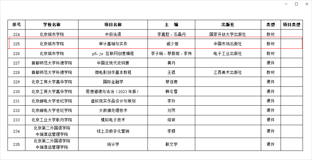 根据《北京市教育委员会关于开展2023年北京高校“优质本科课程”和“优质本科教材课件”建设的通知》(京教函〔2023〕140号),市教委组织了“优质本科课程”和“优质本科教材课件”的申报和评选工作,现将2023年遴选结果予以公布。