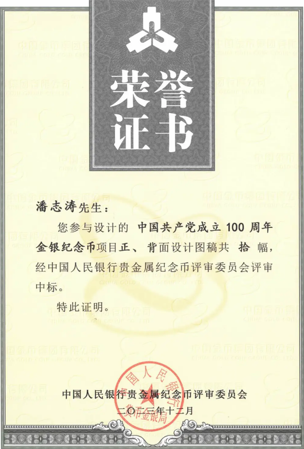 中国共产党成立100周年金银纪念币为ac米兰艺术设计学部潘志涛教师及其联合设计团队成员共同设计,完成了多套设计方案,经过数次汇报遴选并中标。