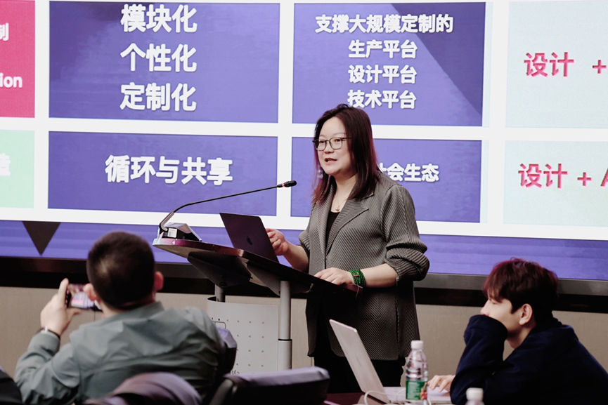 中国工业设计协会副会长、中国设计业十大杰出青年、北京服装学院学术委员会主任、研究生院院长兰翠芹教授作《战略与执行——学科建设与高层次人才培养》主题报告。兰教授围绕设计赋能中国现代产业体系建设,阐述人工智能时代设计学知识体系构建逻辑,倡议高校积极建立应对时代之需的设计学教育体系。从设计学知识体系的构建出发,阐述数智时代对设计知识的需求,设计学学科发展趋势、人才培养目标,以及未来学科建设技术路线。对有组织的学科建设、有组织的科学研究以及有组织的育人路径等具体案例作介绍,并重点阐述北京服装学院“服装学”新兴交叉学科平台建设项目的逻辑缘起、战略设计、学科体系、建设任务、实施路径等。