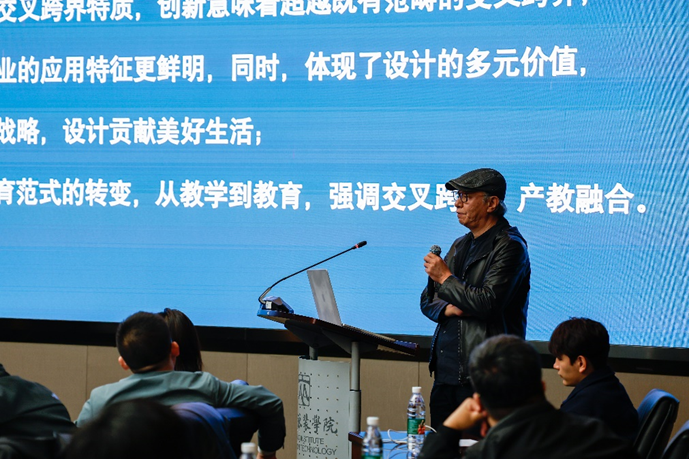 全国设计专业学位研究生教育指导委员会委员、中国工业设计协会副会长,江南大学设计学院院长、博士生导师魏洁教授作《与时俱进——设计教育改革与实践》主题报告。魏教授以江南大学设计学院为例,阐述学科建设要立足地域资源、推动学科交叉,加强设计理论体系建设。并介绍了课程体系建设理念变迁、人才培养方案修订、设计学院开设的特色课程,以及引智基地、国际联合实验室、协同创新实验室等各类人才培养平台建设情况。