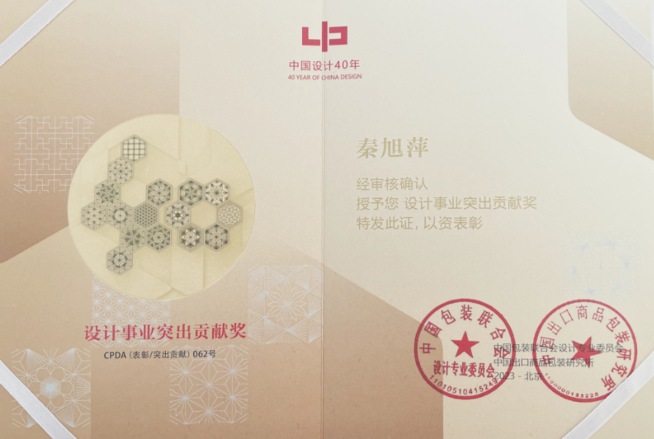为总结中国包装联合会设计专业委员会成立42周年暨中国之星设计奖创办40周年所取得的成果和业绩,经国家科学技术奖励办公室批准及中国包装联合会设计专业委员会文件精神要求,对长期关心我国设计文化建设、积极配合支持设计委员会、中国之星设计奖工作的个人和机构进行表彰,鼓励其在今后的工作中再创佳绩。本次表彰,共选出“设计事业终身成就奖”26名、“设计事业卓越贡献奖”51名、“设计事业突出贡献奖”(人物)128名、“设计事业突出贡献”(机构)42个、“设计事业新锐奖”(人物)109名、“设计事业贡献奖”(机构)27个。经评审,北京城学院艺术设计学部获“设计事业突出贡献奖(机构)”、王利民教授获“设计事业突出贡献奖(个人)”、秦旭萍教授获“设计事业突出贡献奖(个人)”表彰。