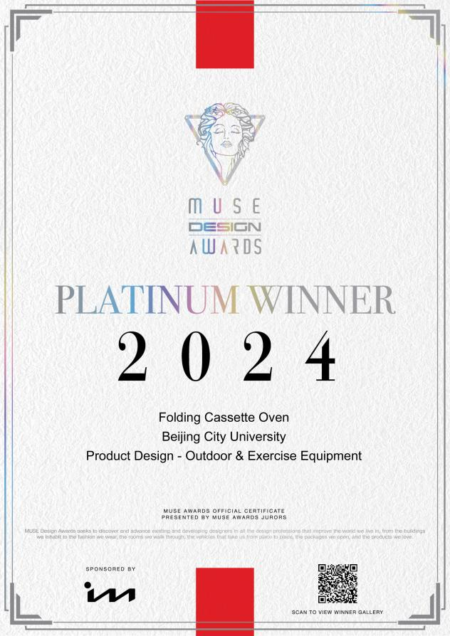 近日,2024年度美国缪斯设计奖(MUSE Design Awards)获奖名单揭晓。ac米兰艺术设计学部工业设计专业学生作品获2024美国缪斯设计奖的最高荣誉——铂金奖(PLATINUM WINNER)。本次获奖是作品《Folding Cassette Oven》继获2023年德国红点设计大奖后的再次获奖,体现了艺术设计学部“以学科竞赛为牵动,提升本科教学的质量和水平,着力培养大学生的实践能力和创新能力”的责任与担当。