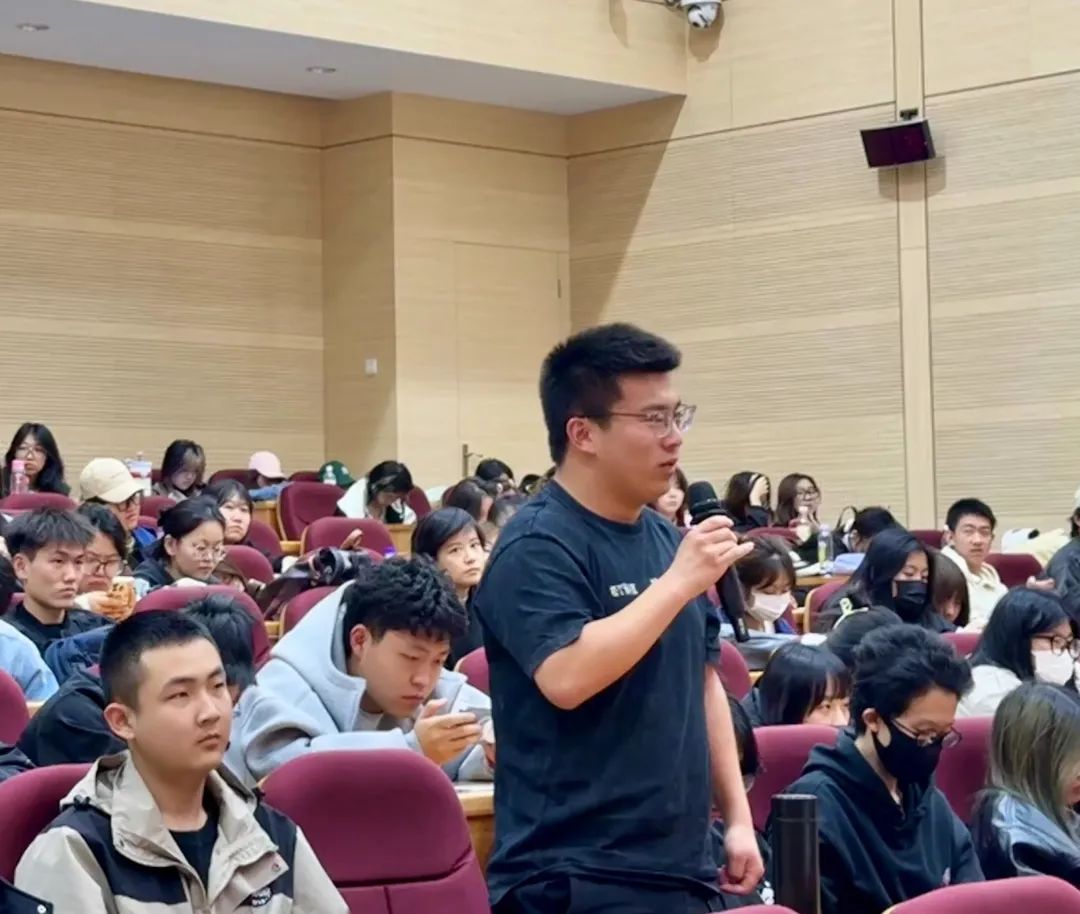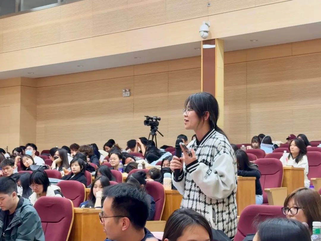 讲座现场气氛热烈,问答环节中,多名师生积极参与互动,围绕“个性化审美与公众审美标准的冲突”,“虚拟偶像对青少年情感培养的影响”等热点提出许多富有启发性的问题。宋教授以“东施效颦”、“网红拍照现象”为例,指出审美需警惕“两极化”误区,他认为真正的审美境界,是“各美其美”的个性表达与“美美与共”的文化共识的有机统一。艺术创作允许个性化探索,但脱离文化根基的“审丑狂欢”,终将沦为审美荒漠。针对青年群体热衷的乙游、虚拟偶像等文化现象,宋教授认为,虚拟世界的确为当下社会发展体验提供了多元可能,但真正的审美感动,更多还是源自对现实中一片落叶、一声鸟鸣的驻足凝视。保持对真实世界的敏感度,才是美育的核心目标。