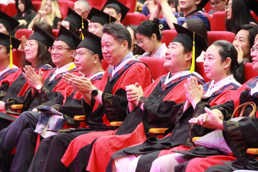 由学部领导与研究生导师王利民、石巍、于丹丹、刘菲菲、郭煜等为25名研究生及65名优秀本科毕业生拨穗、颁发学位证和学历证。