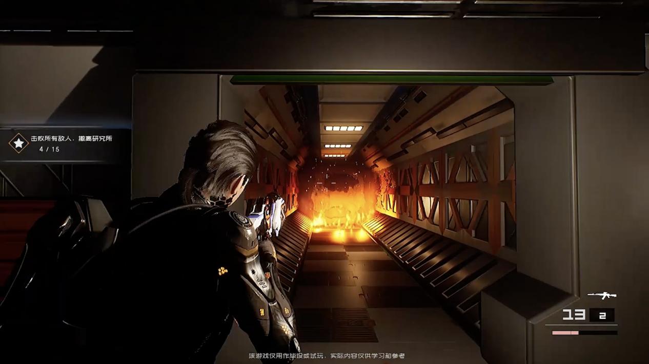 《血痕》是虚构的游戏背景故事,游戏设定在未来的某科技实验室中,主角所在的小队回收实验资料,并逃离实验室,游戏使用虚幻4制作的第三人称射击游戏。