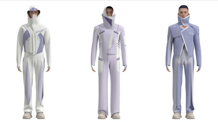 设计理念:设计灵感源于电影《攻壳机动队》,电影当中赛博世界的景象让我印象深刻,因此蓝紫的霓虹灯光成为我设计的主色调,我将女主角的形象做了二次创作,比如印花设计和面料拼接等工艺的穿插使用,来完成与机械感融合的现代女性运动时装。