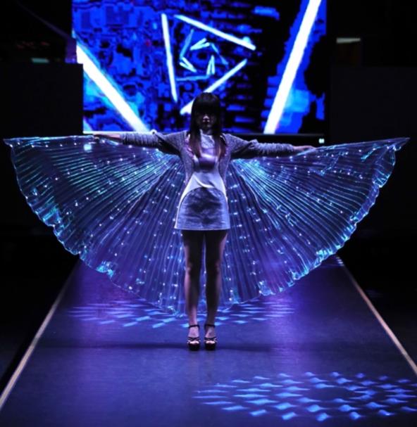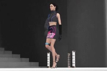 设计理念:我运用仿生水母与金属异形的廓形结合来体现未来世界的美轮美奂。三款设计分别运用3D打印技术、数码印花与热成像技术,整体服装呈现出一种五彩斑斓的效果,既强调在风格上发扬个性,又尽力探索未来主义风格的服装形式。