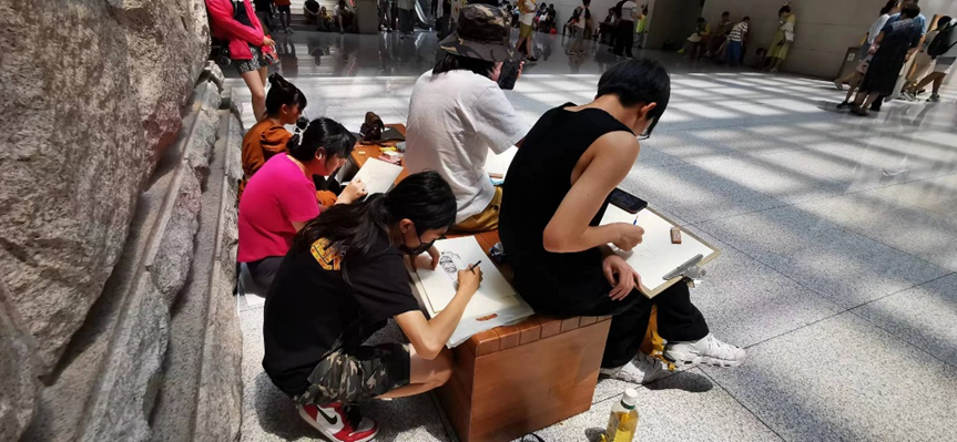 2023年7月7日-8日,艺术设计学部师生团队200余人共同走进中国人民革命军事博物馆,举行“缅怀历史先辈 奋进新时代”红色主题教育活动,并围绕军博展厅内的红色主题内容进行了为期两天的绘画创作。艺术设计学部石巍、黄三胜、赵记同等多名教授为学生们详细讲述了军博陈列展品背后的红色故事,对后续写生提供了创作思路。