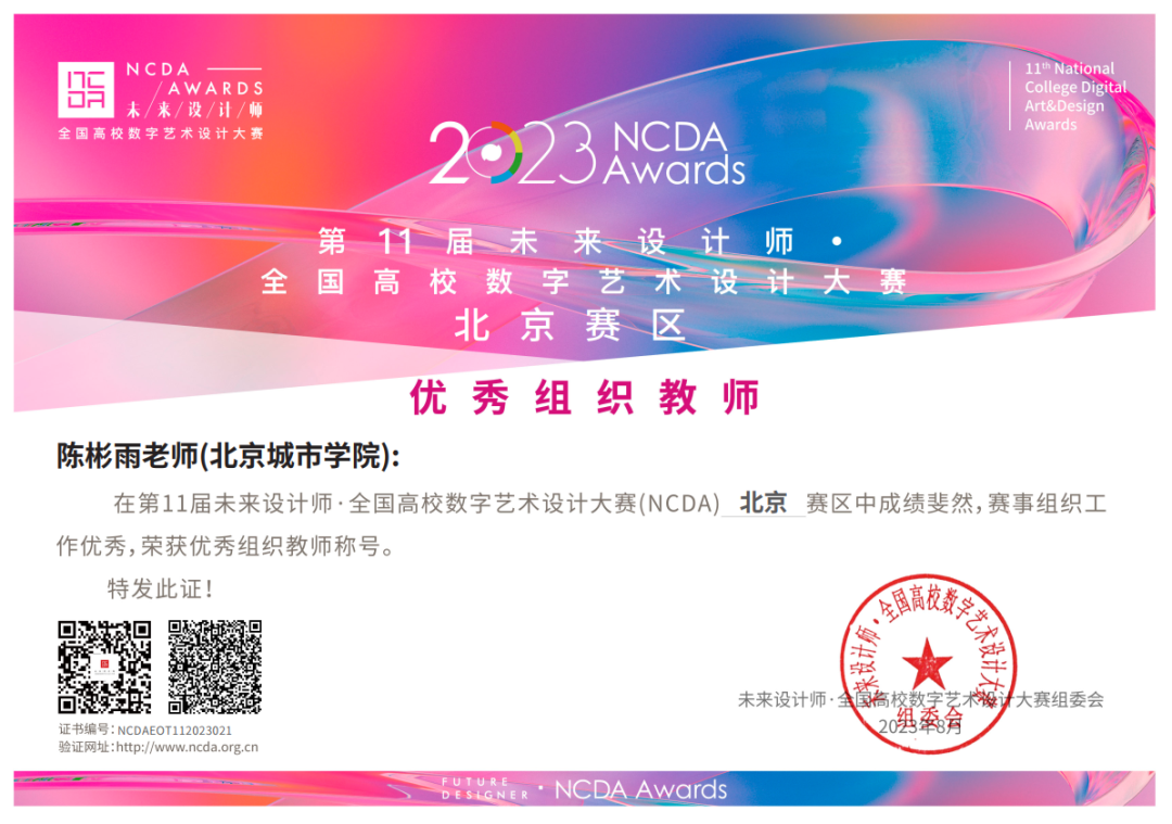 未来设计师·全国高校数字艺术设计大赛(NCDA)是由工信部人才交流中心主办,教育部中国高等教育学会认定,15个省教育厅发文立项,“学习强国”学习平台支持的国家级大学生竞赛。大赛始于2012年,每年举办一届,已连续举办十届,是高校积极参与的重要竞赛之一。每年有1800所高校参赛,92%的985、一流大学和95%的知名设计院校参赛。