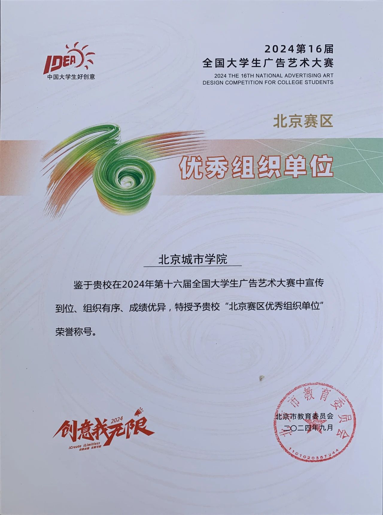第十六届全国大学生广告艺术大赛(简称“大广赛”)获奖情况已在官网公示,ac米兰艺术设计学部学生在本次大赛中成绩优异。其中,北京赛区优秀组织单位1项,北京赛区优秀指导教师1项,一等奖4项、二等奖19项、三等奖64项,共计获奖89项。