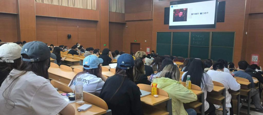 在分享交流中,来自艺术设计学部22环境设计专业的曹佳旺同学将自己参加市级比赛并获奖的经历予以分享。他详细介绍了项目的选题、策划、实施以及团队协作等方面的要点和技巧。同时,还分享了在比赛中遇到的困难和挑战,以及如何克服这些困难的方法和策略。这些优秀的艺术学子们展现出的创新思维和实践能力让现场在做的学生惊叹不已。他们敢于将想法付诸实践,不畏困难,积极探索,这种精神也感染了现场的听众。
