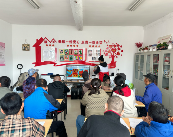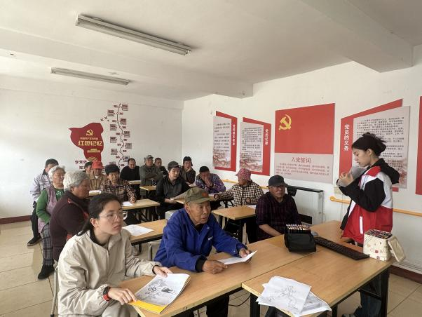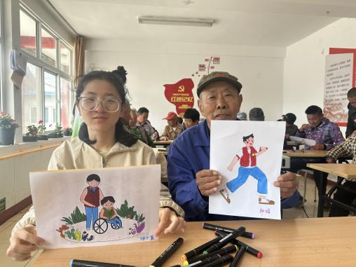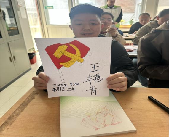 由支部选派的学生志愿者以党建为主题教残疾人士绘画。活动现场,志愿者们耐心引导,一步一步示范,从勾勒轮廓到细致上色,每一个步骤都认真讲解。此次志愿活动,是一次艺术的交流,更是一场心灵的交融。它不仅为残疾人士打开了一扇通往艺术殿堂的窗户,让他们拥有了一次独特而难忘的艺术体验,也让志愿者们在付出中收获了满满的温暖与感动。