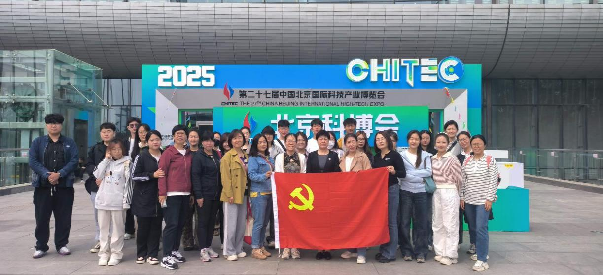 2025年5月8日,第二十七届中国北京国际科技产业博览会(以下简称“北京科博会”)在国家会议中心盛大开幕。为追踪行业趋势,深化校企协同,艺术学工办主任、学管第一党支部书记赵芳芳,艺术学管第二党支部书记刘亚妹,支部组委贾晓晓、纪委梁桐、青年委员张铭佩等十余名老师带领研究生、本科生等40余名学生,于开幕当日前往参观实践。本次活动还有幸邀请到学工委副书记桂溪娟、艺术教务科白瑜等多位领导和老师一同前往。