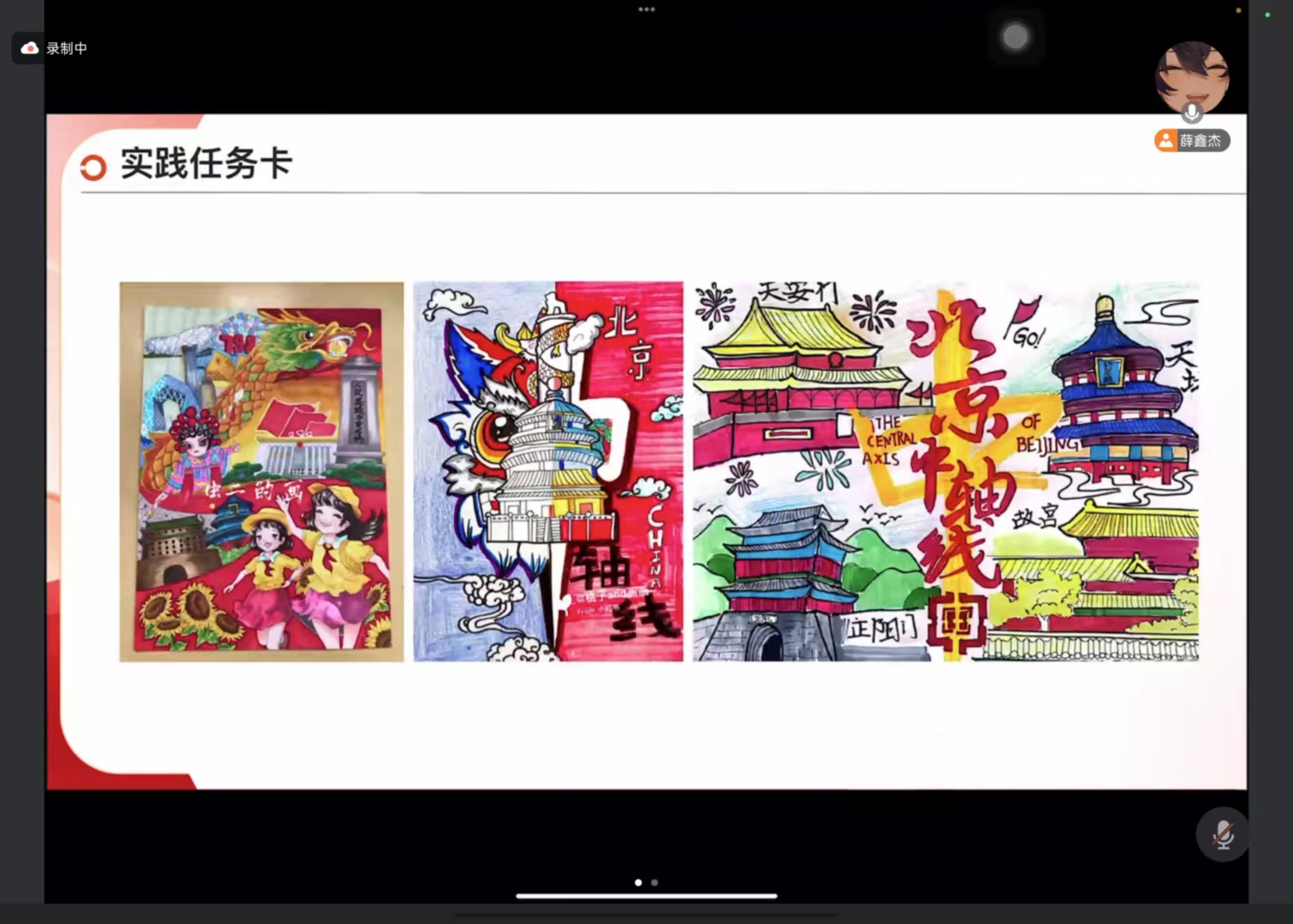 通过上下学期共六次主题课程的系统设计,在云端搭建起连接历史与当下的文化桥梁。本学期北京中轴线课程持续深入推进,尤为聚焦中轴线的当代价值,引领学生深度领悟其深厚文化内涵。五月的第一次课程《皇家与百姓生活的分界线--正阳门与箭楼》,授课老师用视频及手绘示意图,展现城楼礼仪作用与箭楼防御体系,“古今角色互换”环节让学生理解建筑背后社会结构。