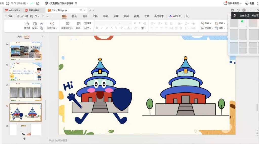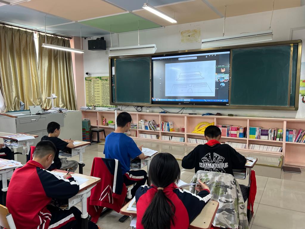 上学期的课程以“从认知到浸润”为脉络,四次主题教学如同一把钥匙,逐步打开中轴线的历史宝库,让孩子们领悟到中轴线的魅力。首课《什么是北京中轴线》借助生动的动画视频与丰富的史料图片,全方位展现这条城市脊梁从古至今的变迁,让学生直观理解其在古代城市规划中作为“脊梁骨”的关键地位。《北京中轴线上的建筑之美》专题聚焦故宫、天安门、鼓楼与钟楼这类标志性建筑,支教党员巧妙结合学生熟悉的影视剧场景,解析斗拱飞檐的构造智慧,同时设置“课堂创作”环节,引导学生用画笔记录琉璃瓦当的精美纹样。《皇家祭祀与对天崇拜--天坛》课程通过PPT动态演示圜丘坛的几何布局,搭配祭祀仪式视频,让学生仿佛穿越时空,感受“祭天礼地”的庄重氛围。《农耕文明与土地崇拜--先农坛》则通过讲述帝王亲耕的历史故事,串联起土地崇拜与农耕社会的深层联系,让学生理解“粒粒皆辛苦”的文化内涵。这四次课程从概念到建筑、从祭祀到农耕,层层递进,让学生领略到中轴线深厚的历史文化魅力。