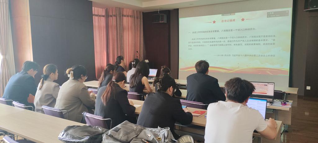 作为支部深入贯彻中央八项规定精神学习教育系列活动的其中一项,2025年5月28日研究生第三党支部在第一会议室开展“八项规定改变中国”专题党课。党课由党支部书记张艳老师主讲,支部全体党员参加学习。