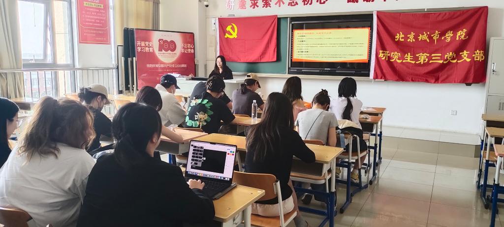 支部书记张艳主持,组织委员兼青年委员肖纪元主讲专题党课,全体党员及入党积极分子齐聚一堂进行专题学习和研讨,筑牢理论根基将师生的思想和行动统一到习近平总书记重要讲话精神上。