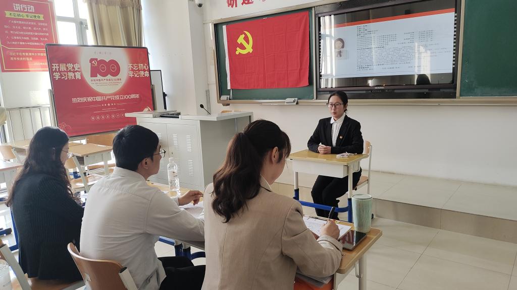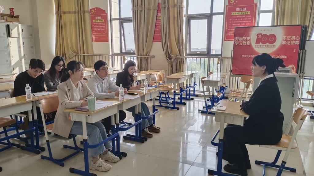 为严格落实党员发展程序,全面考察积极分子的理论素养、政治觉悟与综合能力,2025年10月15日,研究生第三党支部在综合楼625组织开展积极分子推拟发展对象理论笔试与面试答辩,支部书记张艳老师主持考察支部10名符合条件的拟发展对象,邀请学校组织部肖佐新老师、研究生工作办公室谭琪老师作为评委,考核流程规范、秩序井然。