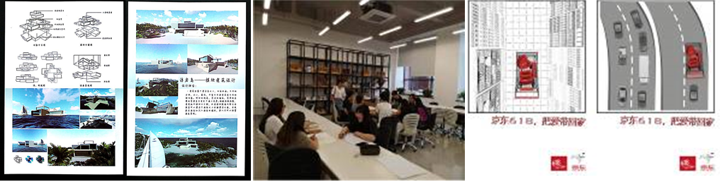 日常教学:提供室内综合设计、公共空间设计、空间设计概念、公园景观设计、室内陈设设计、专业导论课等课程用教学空间、软硬件支持及期末作品展示空间。