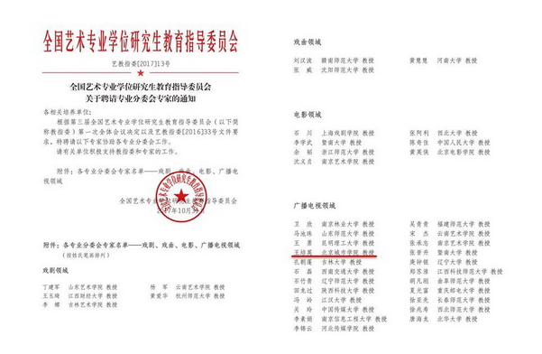 王培英教授被聘为第三届全国艺术教指委广播电视领域分委会专家