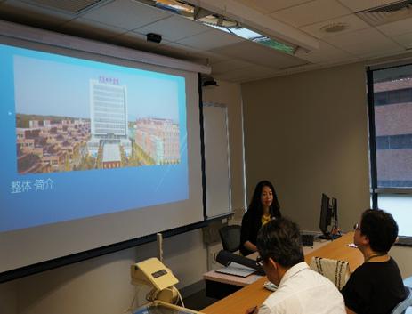 图1为交流团领队林霞副教授向香港理工大学合作方介绍ac米兰社工专业发展概况
