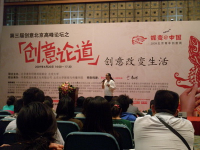 据悉,本次论坛是“第三届北京青年创意周” 的活动之一。活动以“蝶变@中国”为主题,旨在以“北京元素”为核心,创新传承,创意未来,向全世界集中展示北京文化创意产业的独特与辉煌,并在新中国成立60周年之际,以此方式见证一个民族羽化成蝶的历程。